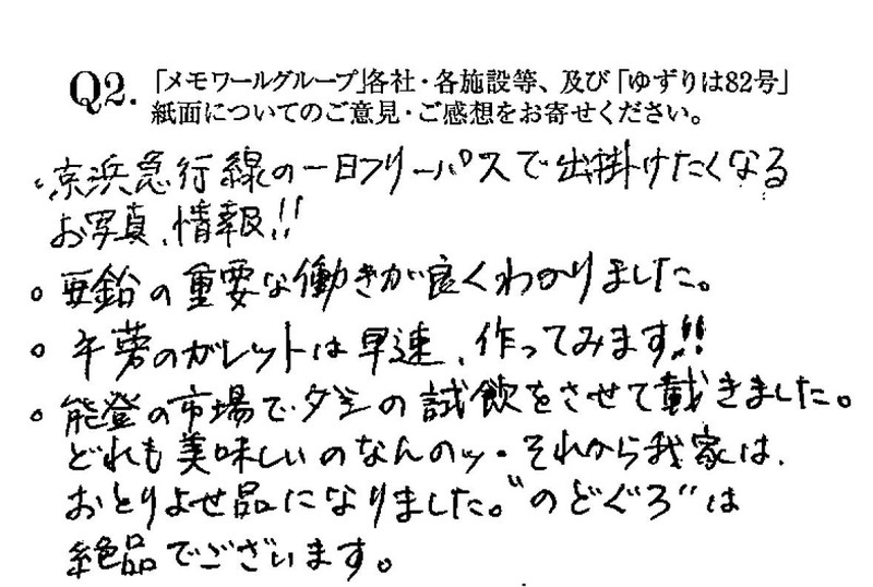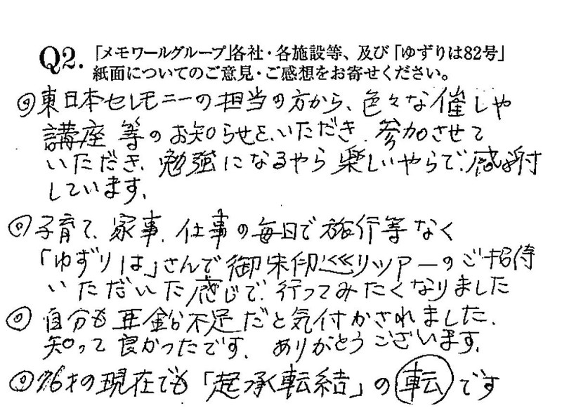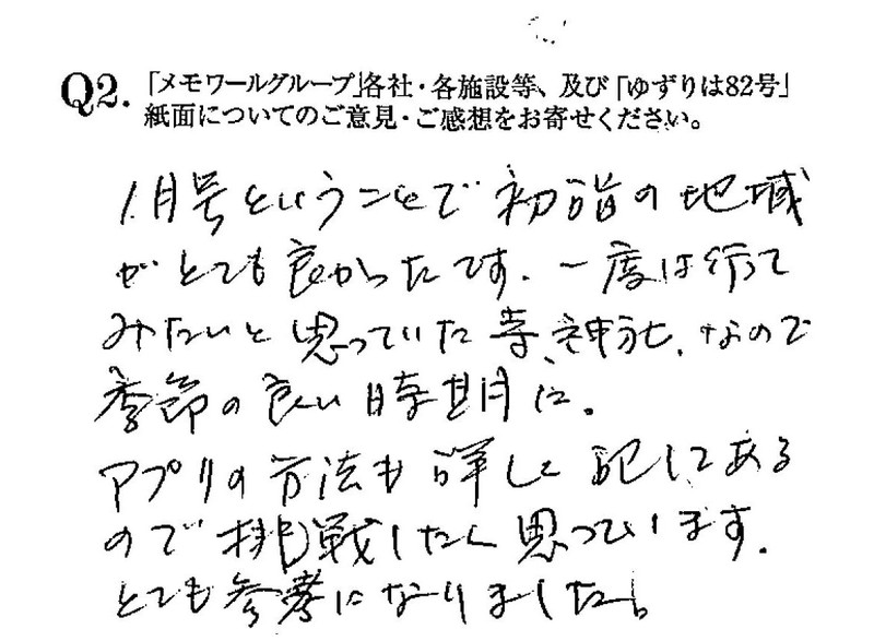 「メモワールグループ」各社・各施設等、及び「ゆずりは82号」紙面についての