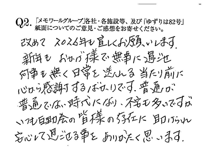いつも互助会の皆様の存在に助けられ安心して過ごせる事を